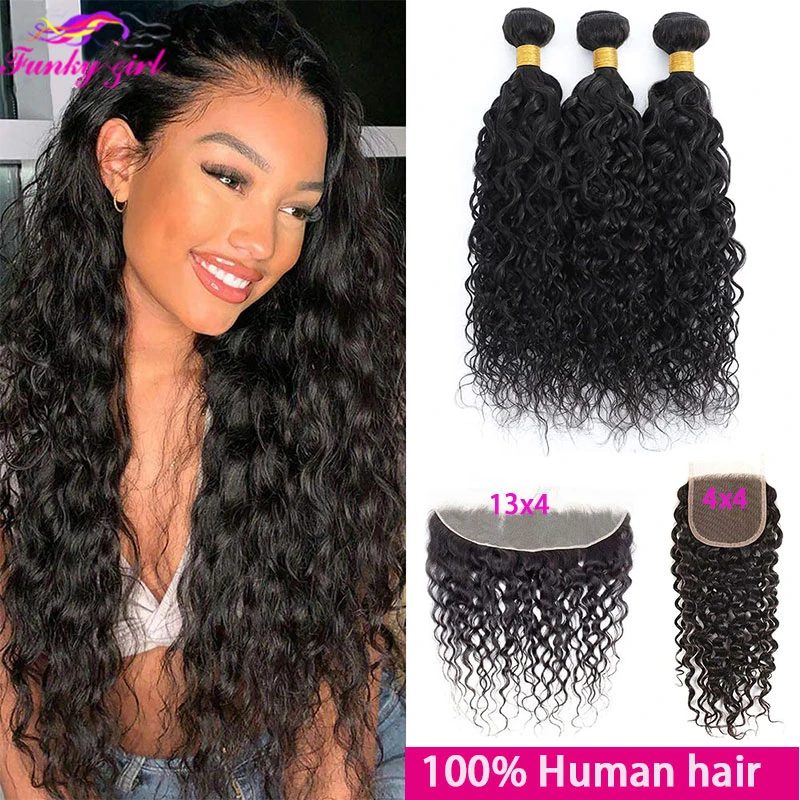 32 34 36 38 40 Inch Water Wave Bundles With Closure Brazilian Remy Human Hair Bundles With Frontal Water Curly 6x6 Lace Closure 3 4 Bundles With Closure Aliexpress