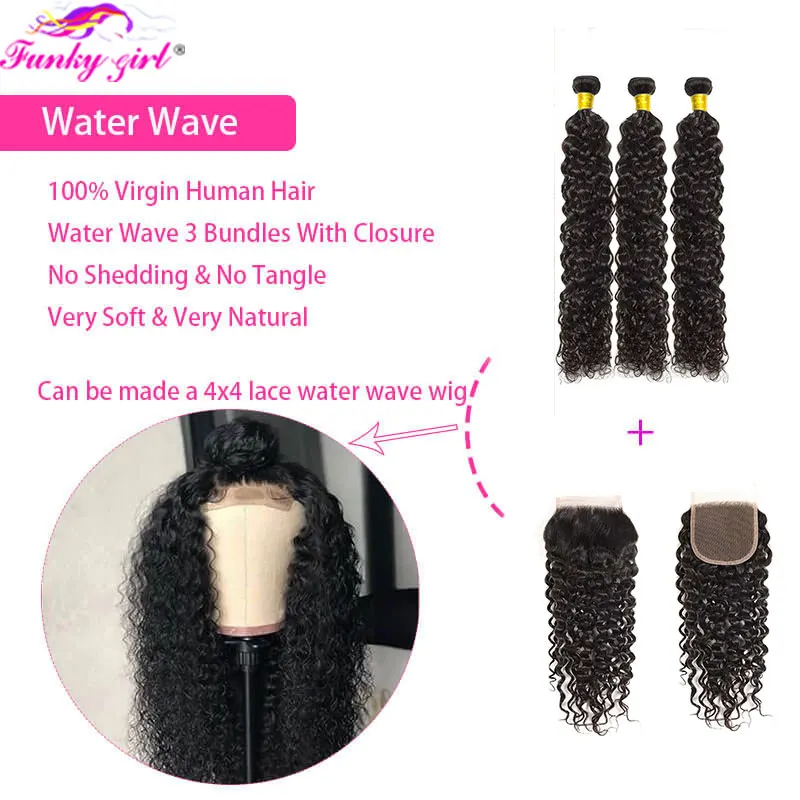 Amazon Com Wet And Wavy Bundles With Closure 10 12 14 10 8a Unprocessed Water Wave Hair 3 Bundles 100 Virgin Brazilian Human Hair Bundles With Closure Can Be Dyed Beauty Personal Care